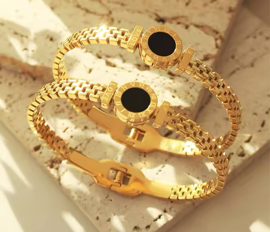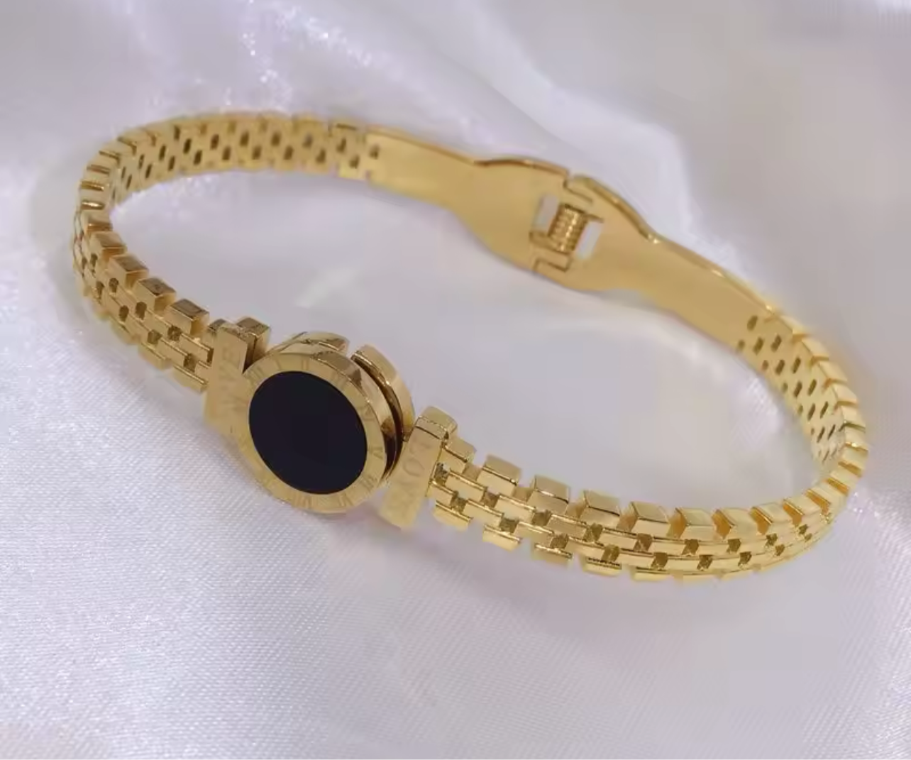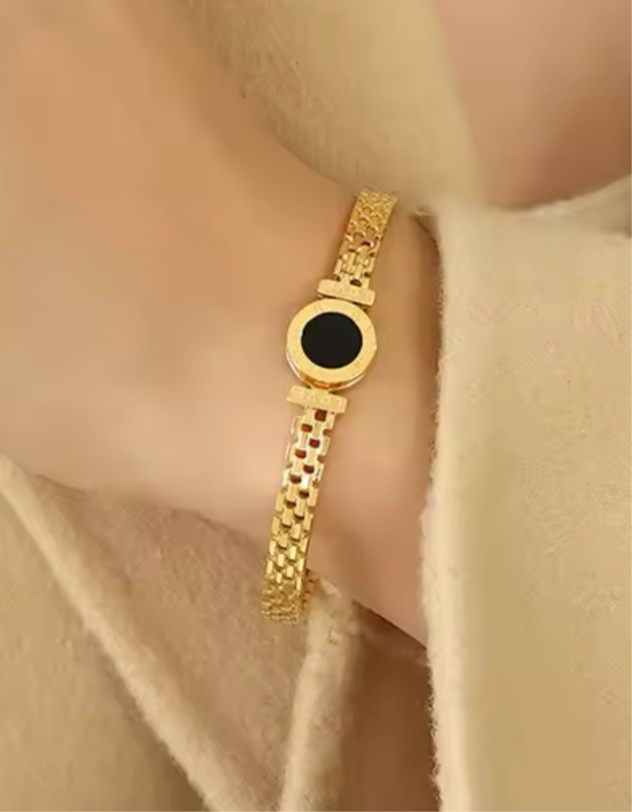 This roman watch-bracelet features elegant titanium coin design with a gold plated finish. Crafted from good quality materials, this timepiece exudes sophistication and style.