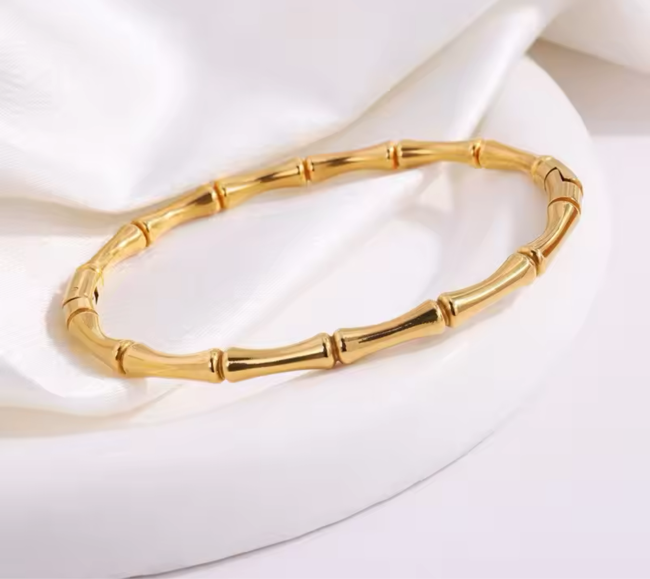Enhance your style with our Bones Bangle, crafted with stainless steel and 18k gold plating. The elegant and stylish design offers a unique touch to any outfit. Enjoy the durability and luxurious shine of this must-have accessory.