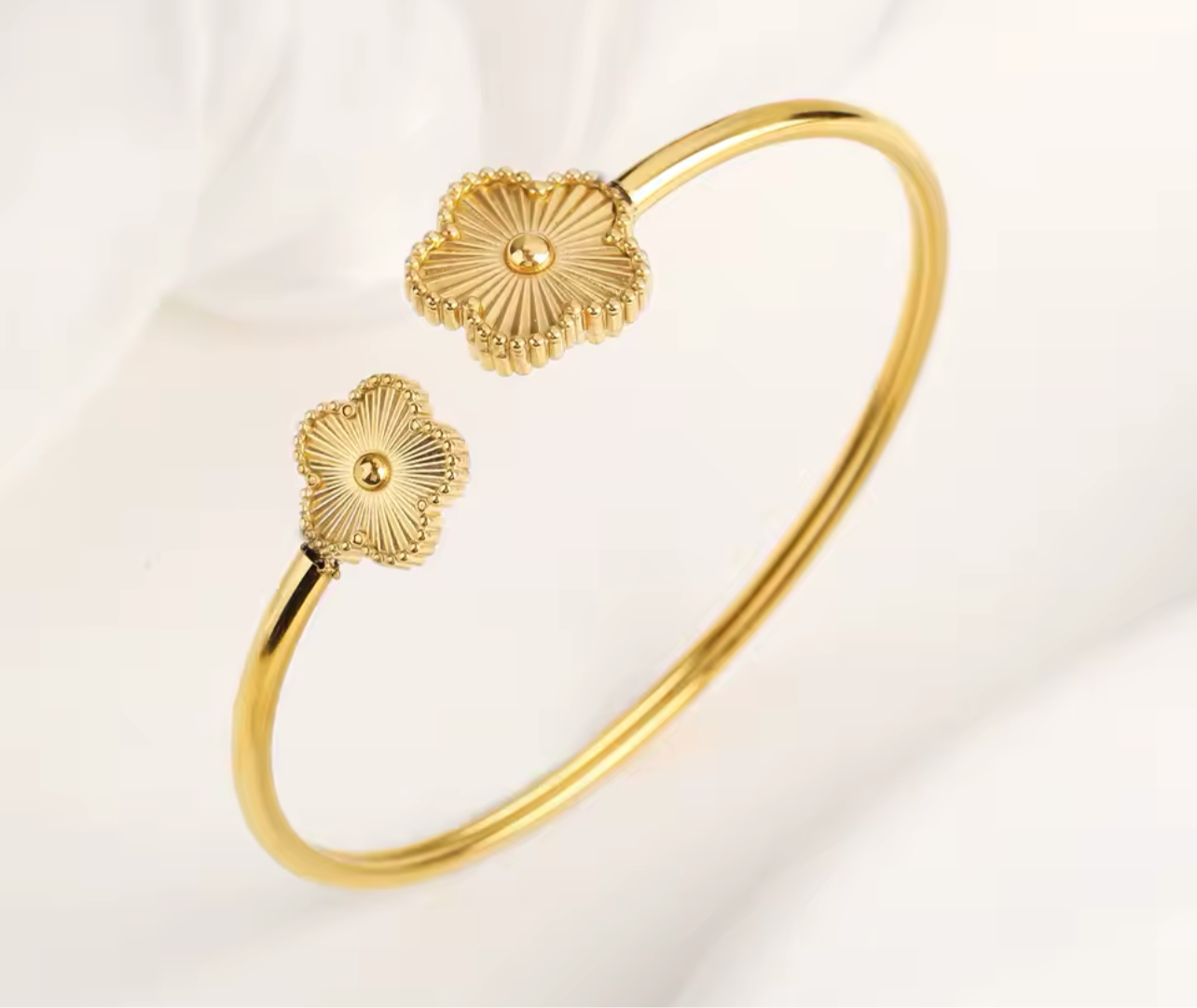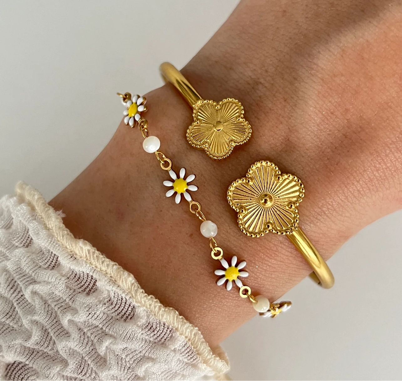 The « Fleurs » bracelet, 316 stainless steel 18k Gold plated, tarnish free, exudes elegance and durability. Its luxurious design elevates any outfit, making it the perfect accessory for any occasion. Elevate your style and make a statement with this timeless piece.