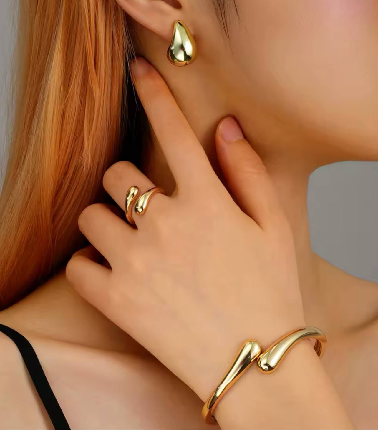 sterling silver and plated with 18k gold, our Gold Drop Earrings are the epitome of elegance. Match them with our Gold Drop Bracelet and Ring for a complete and sophisticated look. These stunning earrings are perfect for any occasion.
