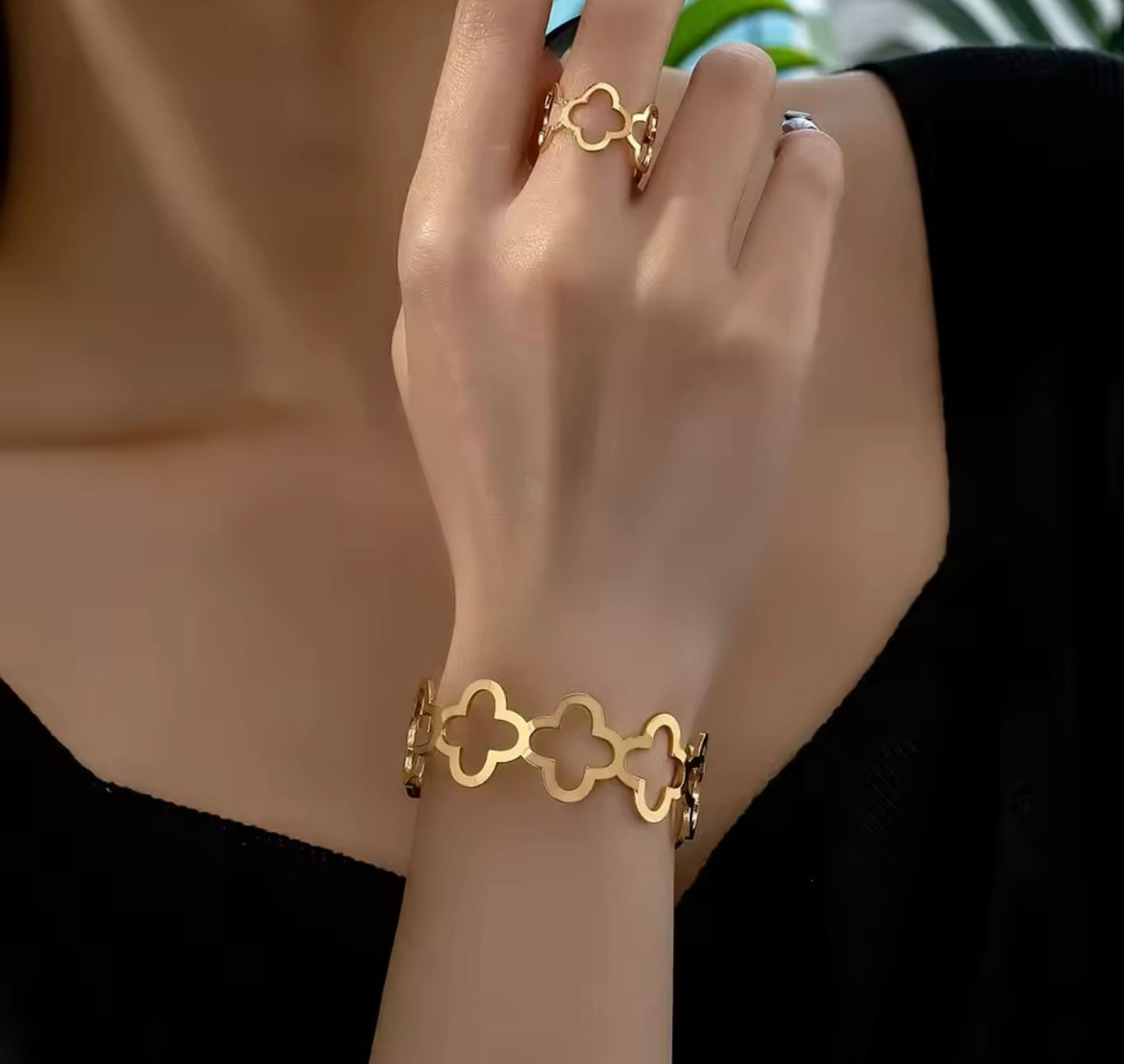 Hollow Flower Bangle & Ring