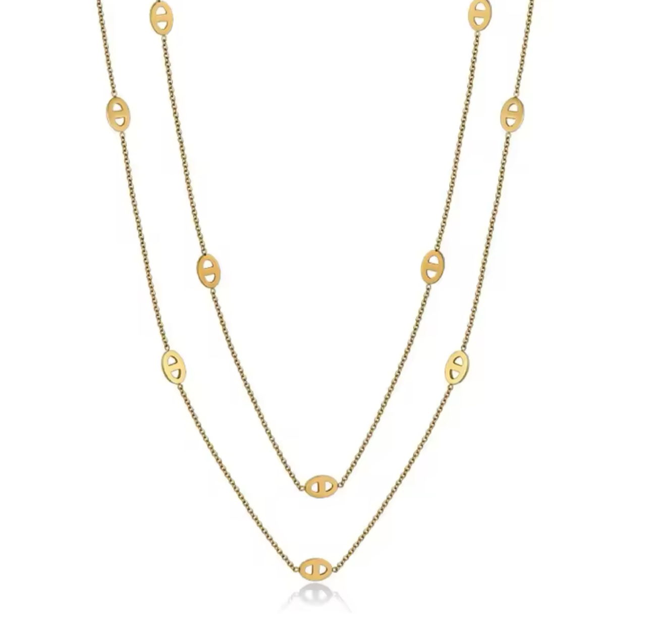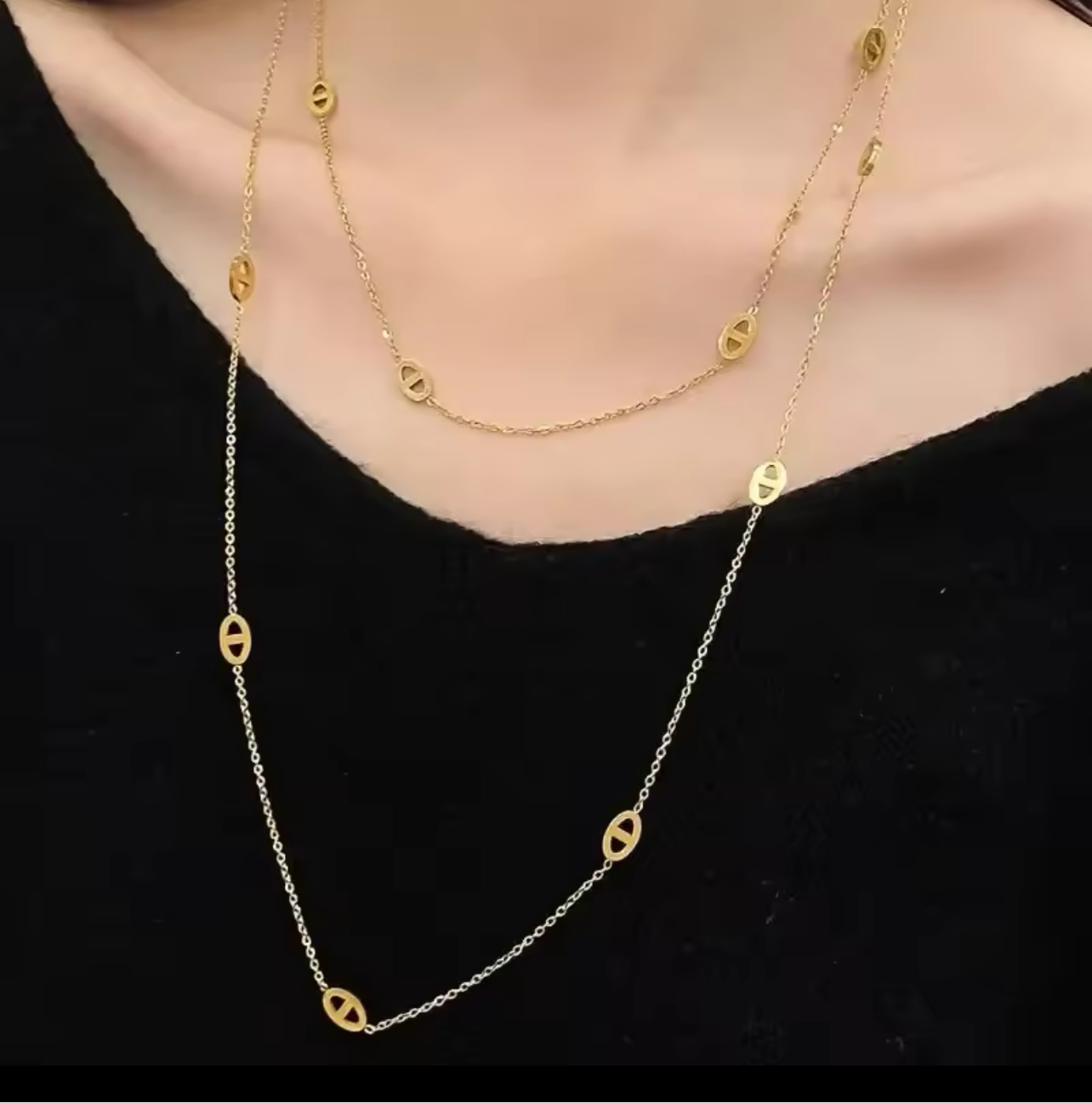 The "Ovals" long necklace is a unique, niche design that adds an element of fashion to any outfit. This necklace is specifically crafted for women, making it a must-have accessory. Its elongated shape and trendy design make it a statement piece for any occasion.