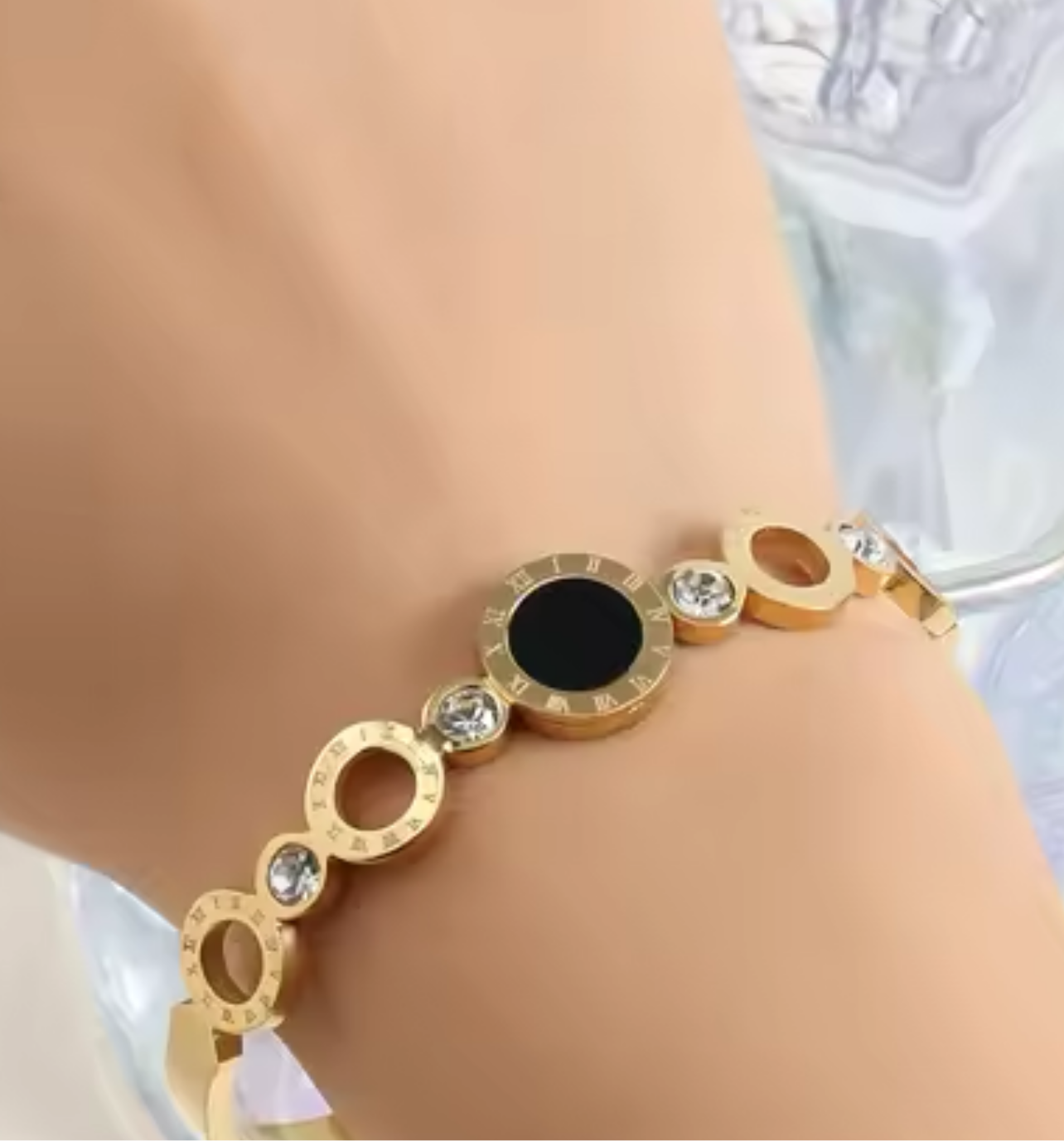 Crafted with high-quality titanium steel, our Roman Hollow Bangle features intricate hollow circles adorned with gold-plated Roman numerals. Exude elegance and sophistication with this timeless piece, perfect for any outfit and occasion.