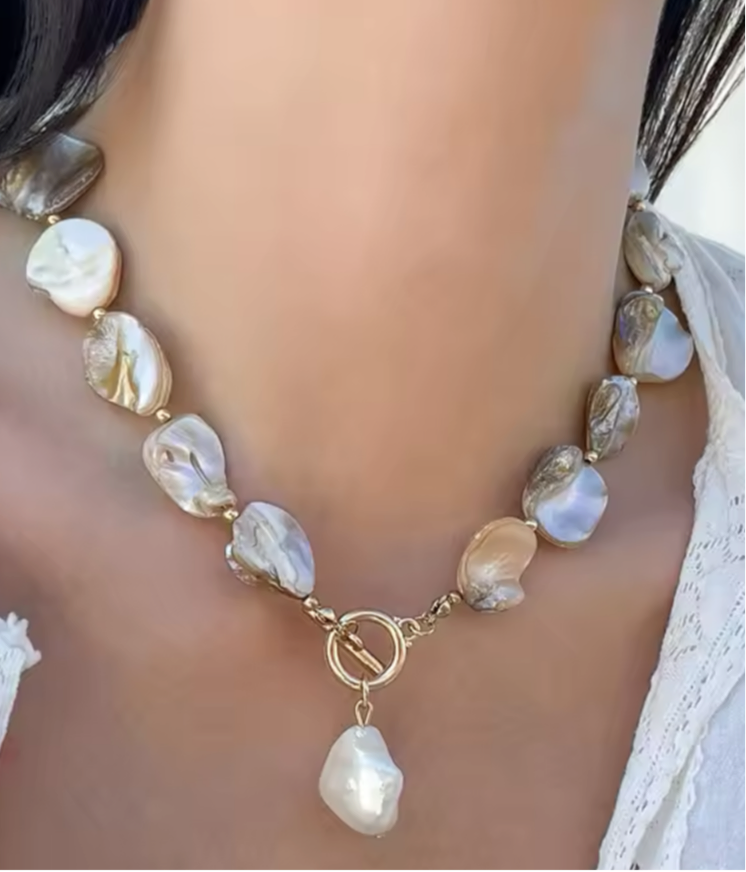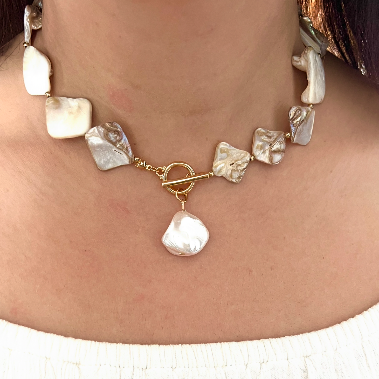 Crafted with 18K gold plated stainless steel and natural shell and pearl. the Seaside Pearl chocker is the perfect addition to your summer or holiday wardrobe. Its stunning beige color will elevate any day or night look.