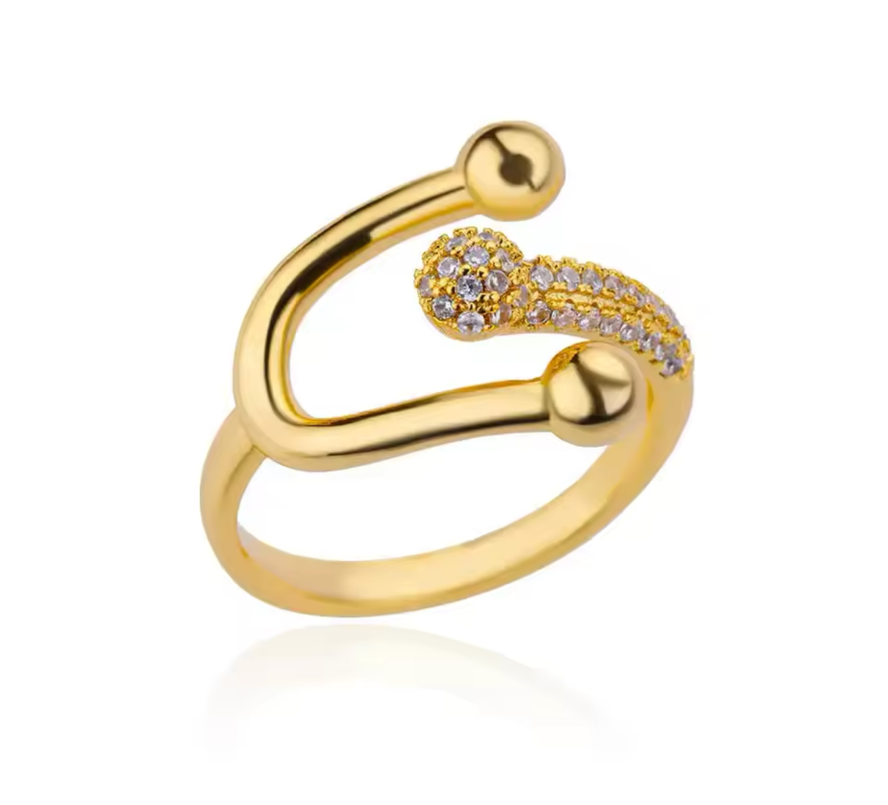 "Experience timeless style with the "U" Zircona Ring. Crafted with stainless steel and coated in gold, this trendy piece boasts a unique U shape design and features flawless zircona stones. Say goodbye to tarnishing and hello to effortless elegance."