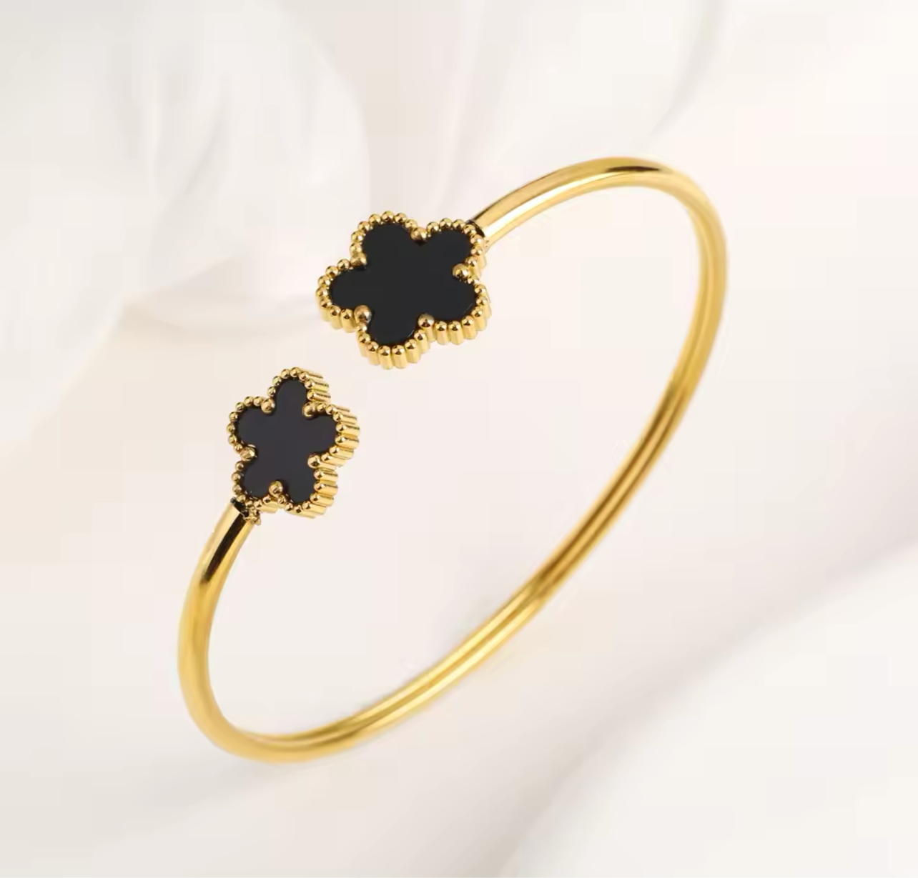 The « Fleurs » bracelet, 316 stainless steel 18k Gold plated, tarnish free, exudes elegance and durability. Its luxurious design elevates any outfit, making it the perfect accessory for any occasion. Elevate your style and make a statement with this timeless piece.