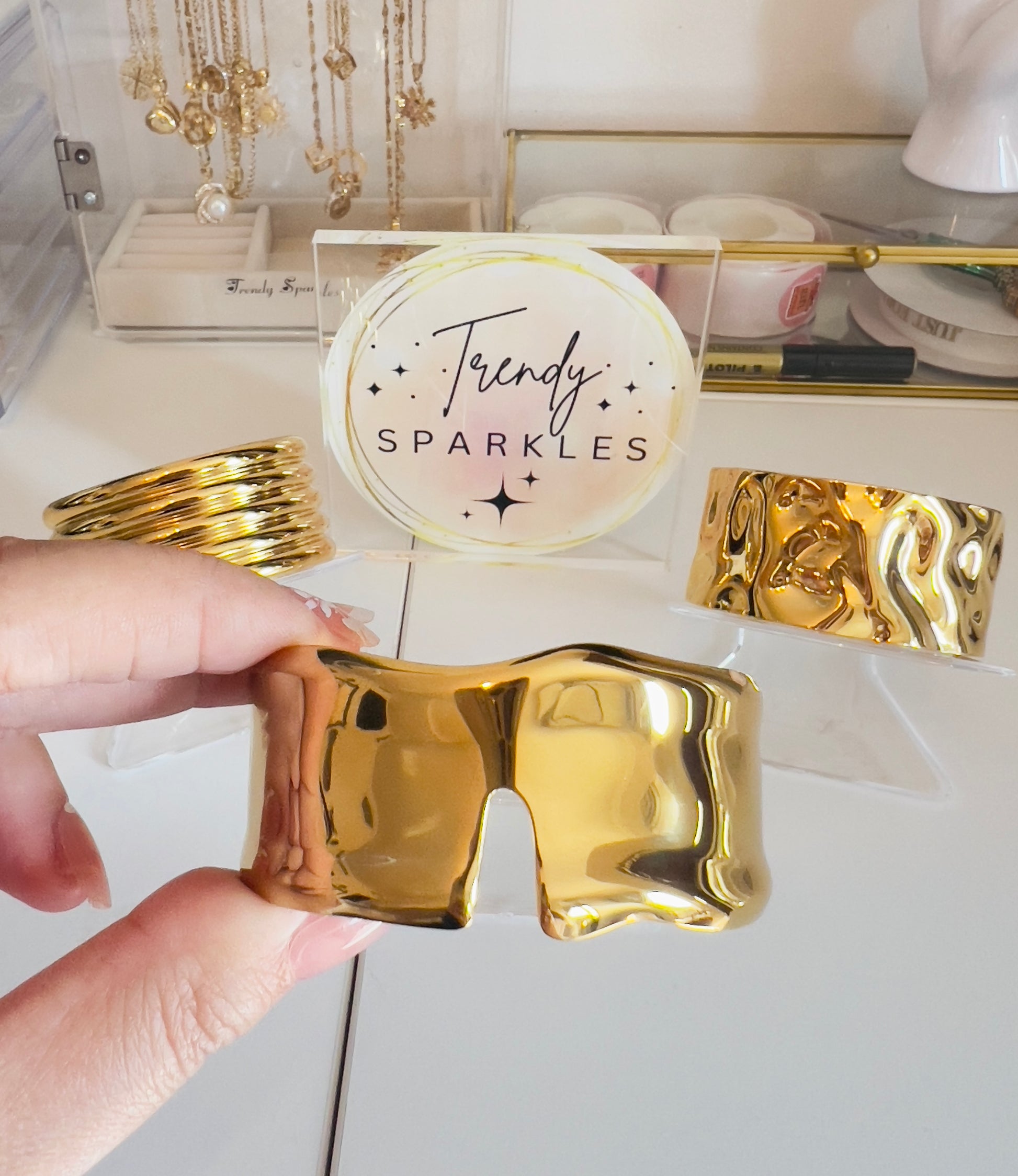 The “Statement" collection Bangle "A" is a stunning addition to any outfit. Made with stainless steel and plated in 18K gold, this large bangle is sure to make a statement. Elevate your style with this bold and elegant piece.