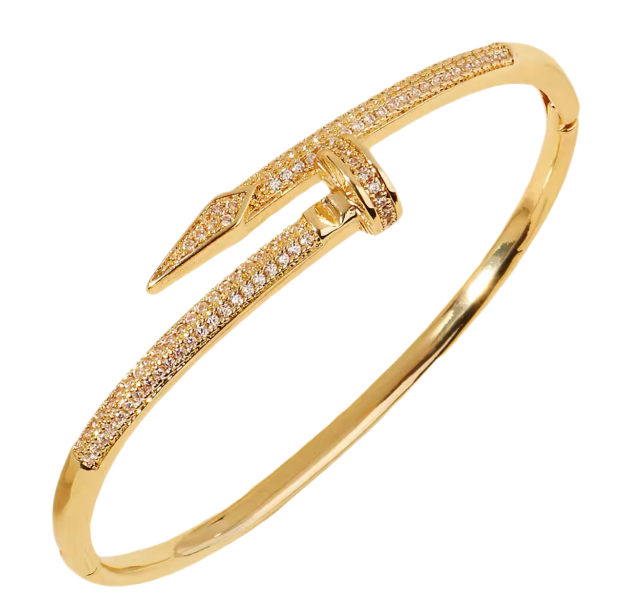 Crafted with precision, this famous nail bangle features stainless steel and is plated with 18k gold for a luxurious touch. Adorned with zirconia, it's also tarnish-free. Elevate your style with this elegant and durable piece.